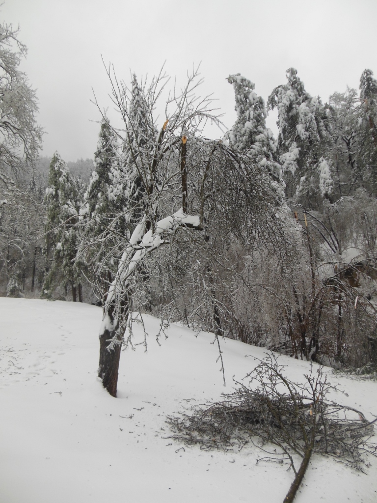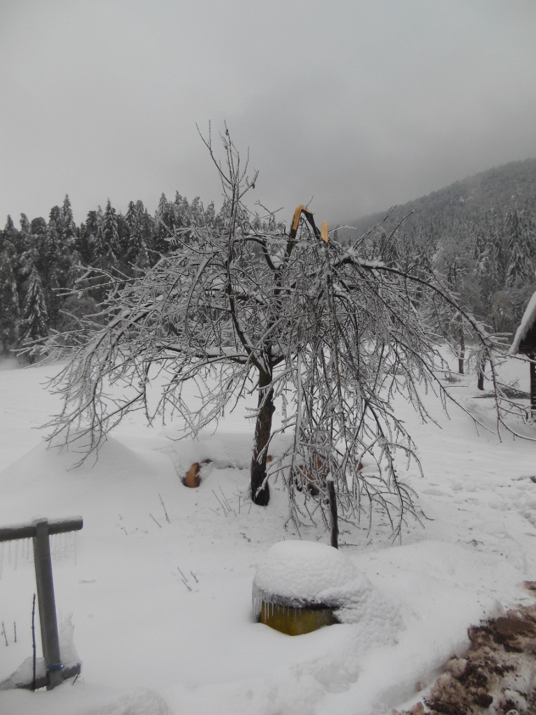 Kratko, hladno obdobje zime konec januarja 2014 je v večjem delu Slovenije postreglo s presenečenjem. Temperaturna inverzija z negativnimi temperaturami pri tleh in dotok vlažnega zraka v višjih plasteh, ki je iz Sredozemlja prinašal dež, sta na drevju puščala debele obloge ledu. Drevesa tudi do 5cm debele plasti statično niso mogla vzdržati. Veje so se upogibale, veliko se jih je odlomilo ( odčesnilo bi bila prava beseda), veliko dreves pa se je enostavno podrlo. Kaj storiti po tem razdejanju?