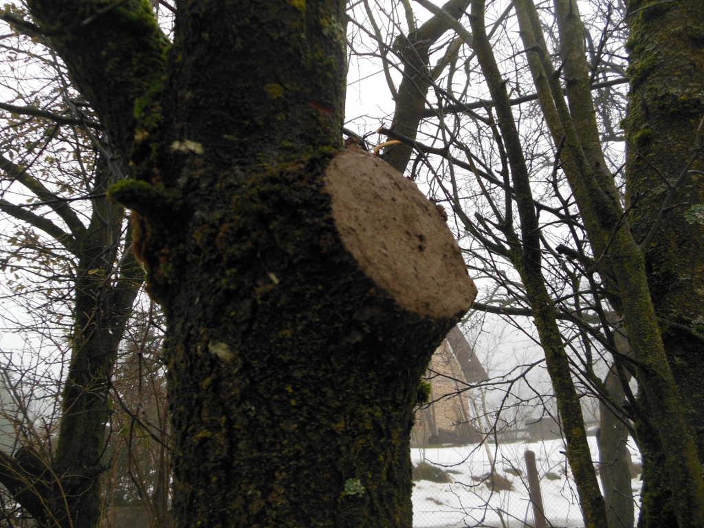 Če je veja odčesnjena globoko v deblo, samo obrežemo robove in namažemo s pasto.