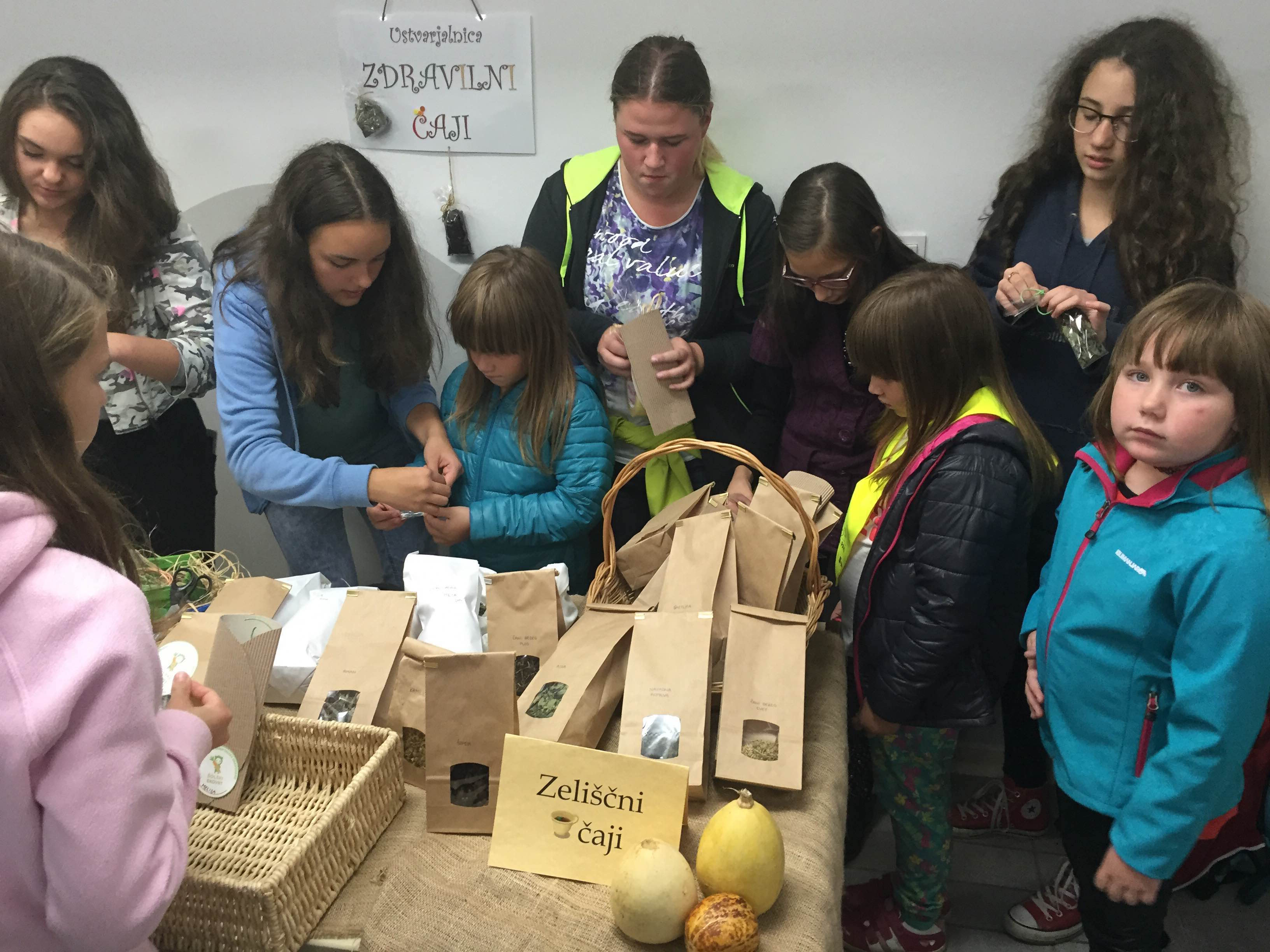 Pred zaključkom srečanja smo se obiskovalci še ustavili ob posameznih delavnicah in si ogledali ustvarjene izdelke, nato pa se v predprostoru v dvorcu še okrepčali z dobrotami, ki so jih pripravili učenci in kuharice iz obeh šol.