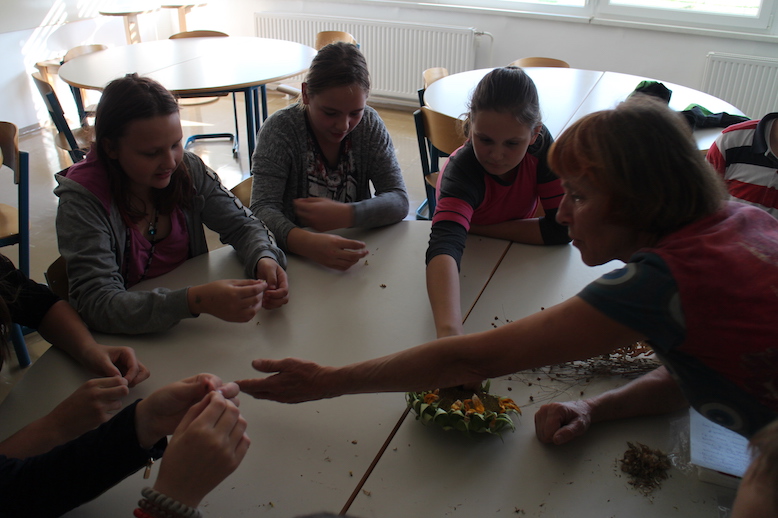 Učenci so zaplesali in zapeli ter tako popestrili začetek prijetnega popoldneva. Druženje so nadaljevali v delavnicah. V »ustvarjalnici za najmlajše« so otroci vrtcev s pomočjo njihovih vzgojiteljic v štirih skupinah izdelovali okrasne predmete iz naravnih materialov, si pripravili sadne napitke in zeliščne namaze. V delavnici »semena in njihov pomen za samooskrbo« so s pomočjo članice društva Ajda, očistili in shranili različna semena, ki so jih pridelali učenci naše šole na šolskem vrtu. Tudi v delavnici »moj čajček« so uporabili zelišča s šolskega vrta. Da se da iz listov narediti rožice, so ugotavljali na drugi delavnici. Na šolskem vrtu pa so v izvedbi članov Sadjarskega društva Mežiške doline posadili sadno drevo. V delavnici »naredimo visoko gredo«, pa so ugotovili, da je potrebno precej različnega naravnega materiala za njeno izvedbo.